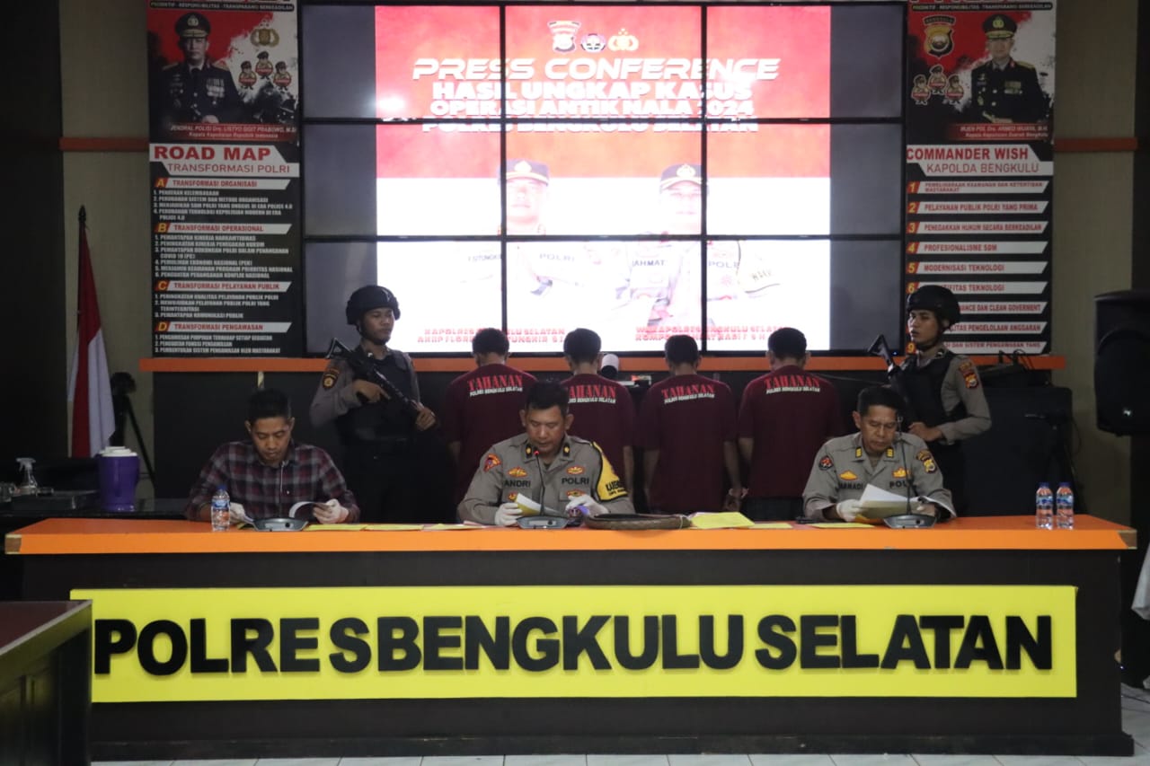 Keempat pelaku tersebut terjaring Operasi Antik Nala 2024 Polres BS Adapun pengungkapan kasus tindak pidana narkoba tersebut disampaikan pada press realese di Aula Comend Center Polres BS, Dipimpin Kapolres BS, AKBP Florentus Situngkir SIK melalui Kabag Ops, Kompol Andri Anwar SH didampingi Kasat Narkoba, AKP Muhammad Taslim dan Kasi Humas, AKP Sarmadi pada Kamis 11 Juni 2024.