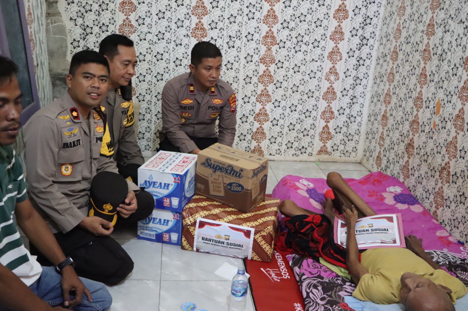 Dalam kunjungan tersebut Kompol Bakit besera jajaranya memberikan bantuan berupa sembako, perlengkapan kesehatan serta tali asih Kepada kekek