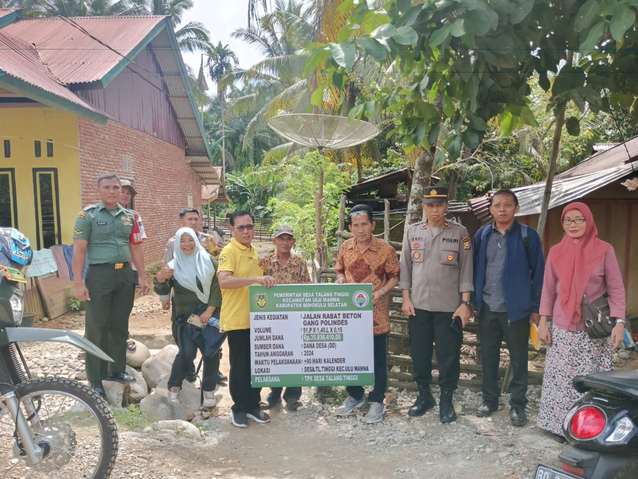 Pada Waktu Terpisah Kapolres Bengkulu Selatan Akbp Florentus Situngkir, SIK melalui Kapolsek Pino Iptu Andi mengatakan, kegiatan Menghadiri Sertifikasi Pembangunan Gedung dan Rabat Beton menggunakan DD di Desa Talang Tinggi kecamatan Ulu Manna kabupaten Bengkulu Selatan merunut kepada juknis penggunaan Dana Desa 2024.