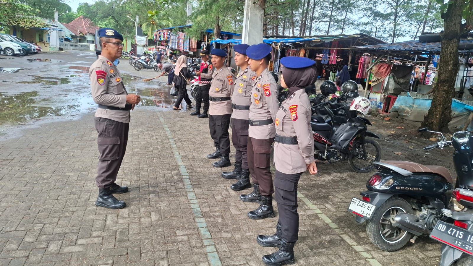 TBNews, Bengkulu – Dalam rangka memastikan keamanan dan kenyamanan masyarakat di kawasan wisata, Iptu Rudi Hartono selaku Perwira Pengendali Pengamanan di Pos Pengamanan (Pospam) Pantai Zakat memimpin apel pagi pada Minggu (28/12/2025).
