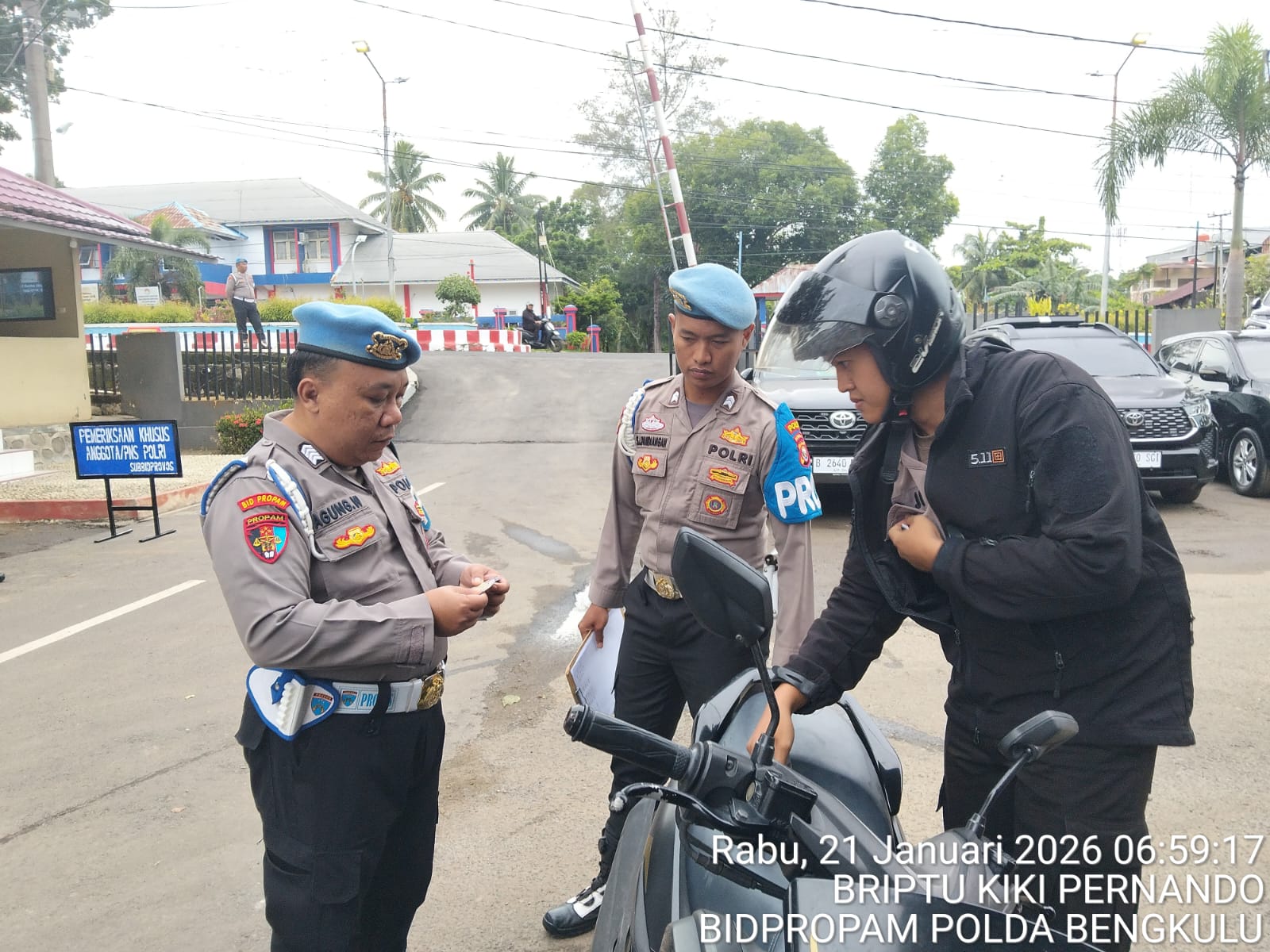 TBnews, BENGKULU – Polda Bengkulu kembali menegaskan komitmennya dalam menjaga kedisiplinan dan profesionalisme internal melalui pelaksanaan Operasi Penegakan Ketertiban dan Disiplin (Ops Gaktibplin), Rabu pagi, 21 Januari 2026. Kegiatan ini dilaksanakan mulai pukul 08.00 WIB bertempat di Gerbang Utama Mapolda Bengkulu dan Pintu Gerbang Reskrimum.