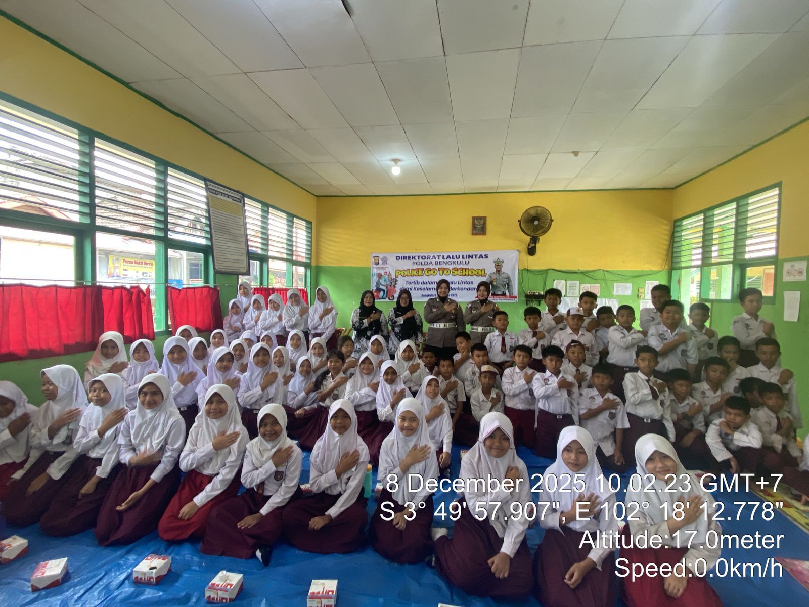 TBNews,BENGKULU – Ditlantas Polda Bengkulu melaksanakan kegiatan Police Go To School di SDN 99 Kota Bengkulu pada Senin, 8 Desember 2025. Kegiatan ini bertujuan untuk memberikan edukasi dan sosialisasi tentang keselamatan lalu lintas kepada siswa-siswi SDN 99 Kota Bengkulu.