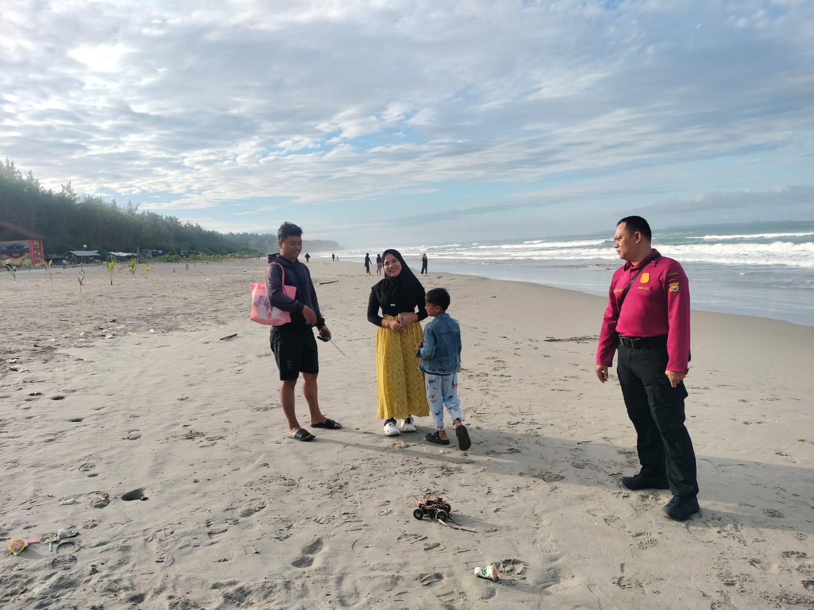 TBNews Bengkulu, 5 September 2025 – Anggota Subdit Wisata Direktorat PamObvit Polda Bengkulu melaksanakan kegiatan Patroli Dialogis di Kawasan Wisata Pantai Panjang Bengkulu. Kegiatan ini dipimpin oleh AKP Desri Zaldi selaku Padal, bersama dengan Aipda Surahman, Bripka Teddy Agusman, Bripka Asep Mulyadi, dan Brigpol Anggri Ardiansyah.