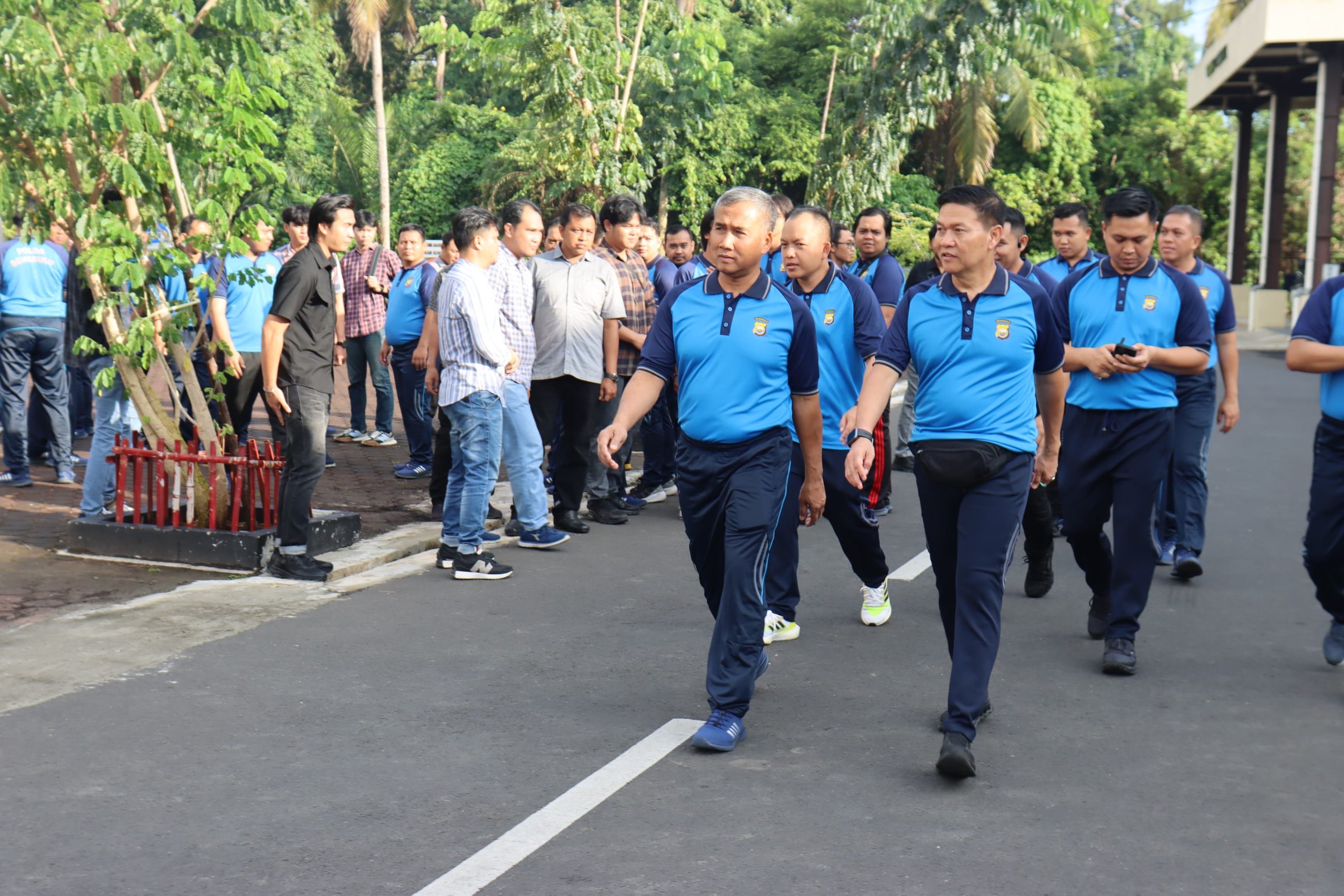 Kegiatan yang dimulai pukul 08.00 WIB ini diawali dengan apel pagi singkat, dilanjutkan dengan Olahraga beladiri dan jalan santai mengelilingi kawasan Mapolda. Suasana berlangsung penuh semangat dan kekeluargaan.