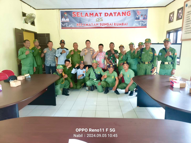 TBNews Mukomuko- Polsek Sungai Rumbai bersama pemerintah desa melaksanakan kegiatan peningkatan kapasitas satuan perlindungan masyarakat (Linmas) di Kecamatan Sungai Rumbai, Kamis (5/9/24).