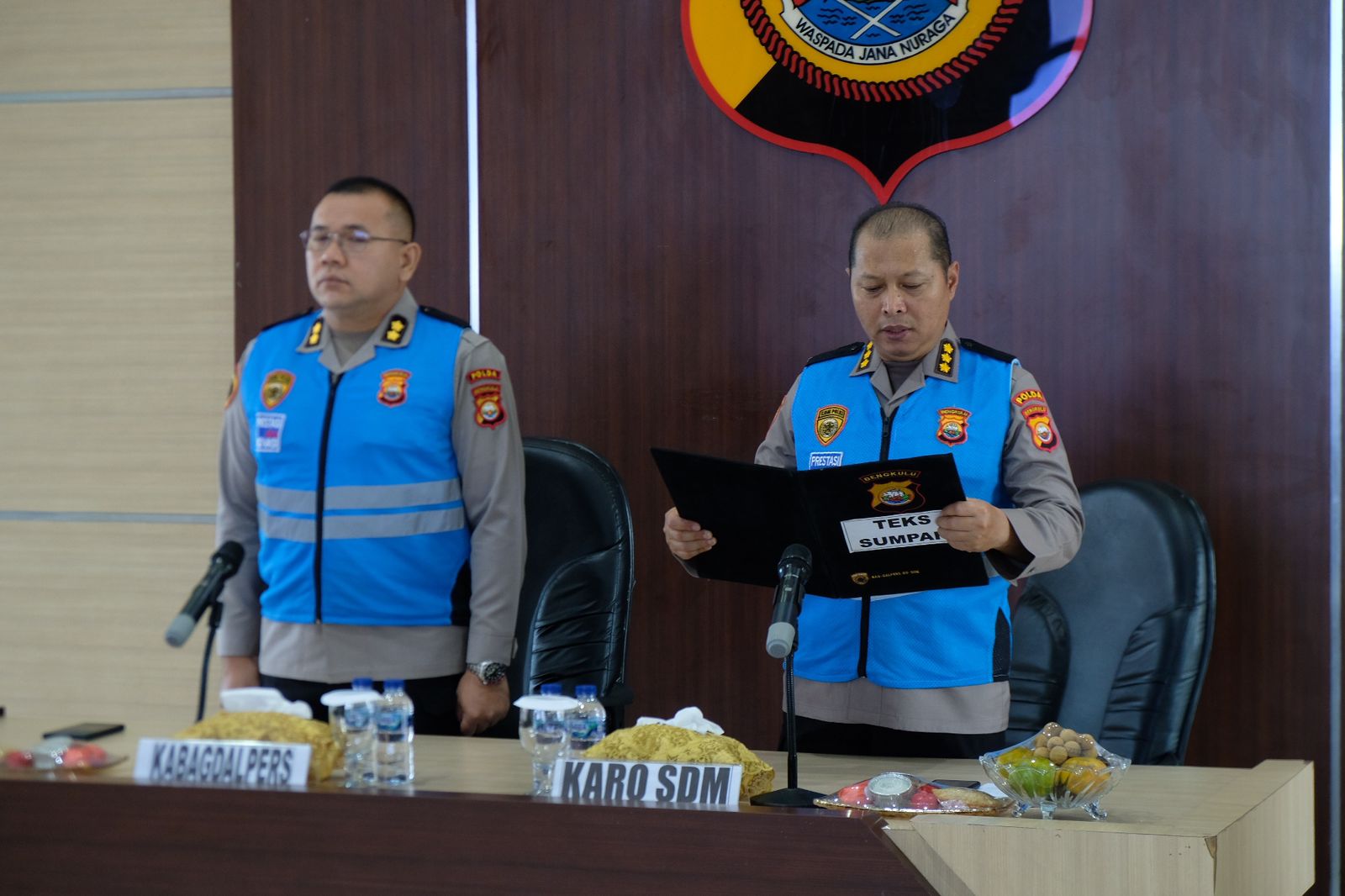 Acara dibuka dengan menyanyikan lagu Indonesia Raya, diikuti dengan pembacaan doa yang dilakukan secara daring dari Mabes Polri. Dalam kegiatan ini, dilakukan pembacaan sumpah dan penandatanganan Pakta Integritas oleh Karo SDM Polda Bengkulu dan perwakilan peserta, menegaskan komitmen untuk melaksanakan tugas dengan bersih, transparan, akuntabel, dan humanis.
