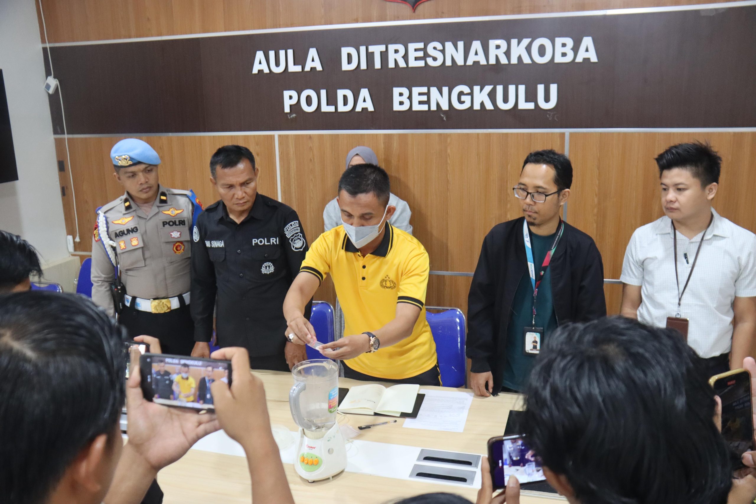 Kegiatan pemusnahan dipimpin oleh penyidik Ditresnarkoba Polda Bengkulu, AKP Yudha Ferry W., S.Sos., M.M., berdasarkan Surat Perintah Pemusnahan Barang Bukti Nomor: SP.Musnah/BB/5-55/2026/Ditresnarkoba/Polda Bengkulu serta surat penetapan status barang sitaan dari Kejaksaan Negeri Bengkulu Utara.