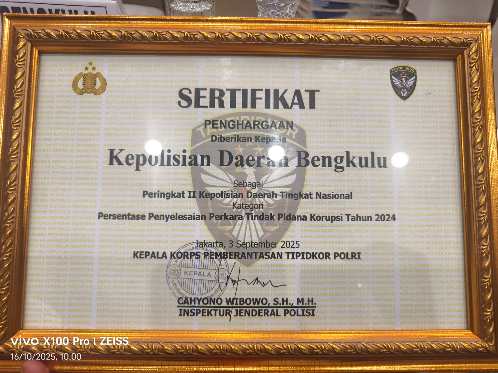 Diungkapkan Kapolda Bengkulu Irjen Pol. Mardiyono, S.I.K., M.Si, melalui Kabid Humas Polda Bengkulu, Kombes Pol. Andy Pramudya Wardana, S.I.K., M.M., M.A.P., CPHR., CBA prestasi dan penghargaan yang diterima ini, menjadi bentuk nyata Polda Bengkulu dengan komitmen tinggi dan kinerja optimal dalam menyelesaikan perkara tindak pidana korupsi sepanjang tahun 2024.