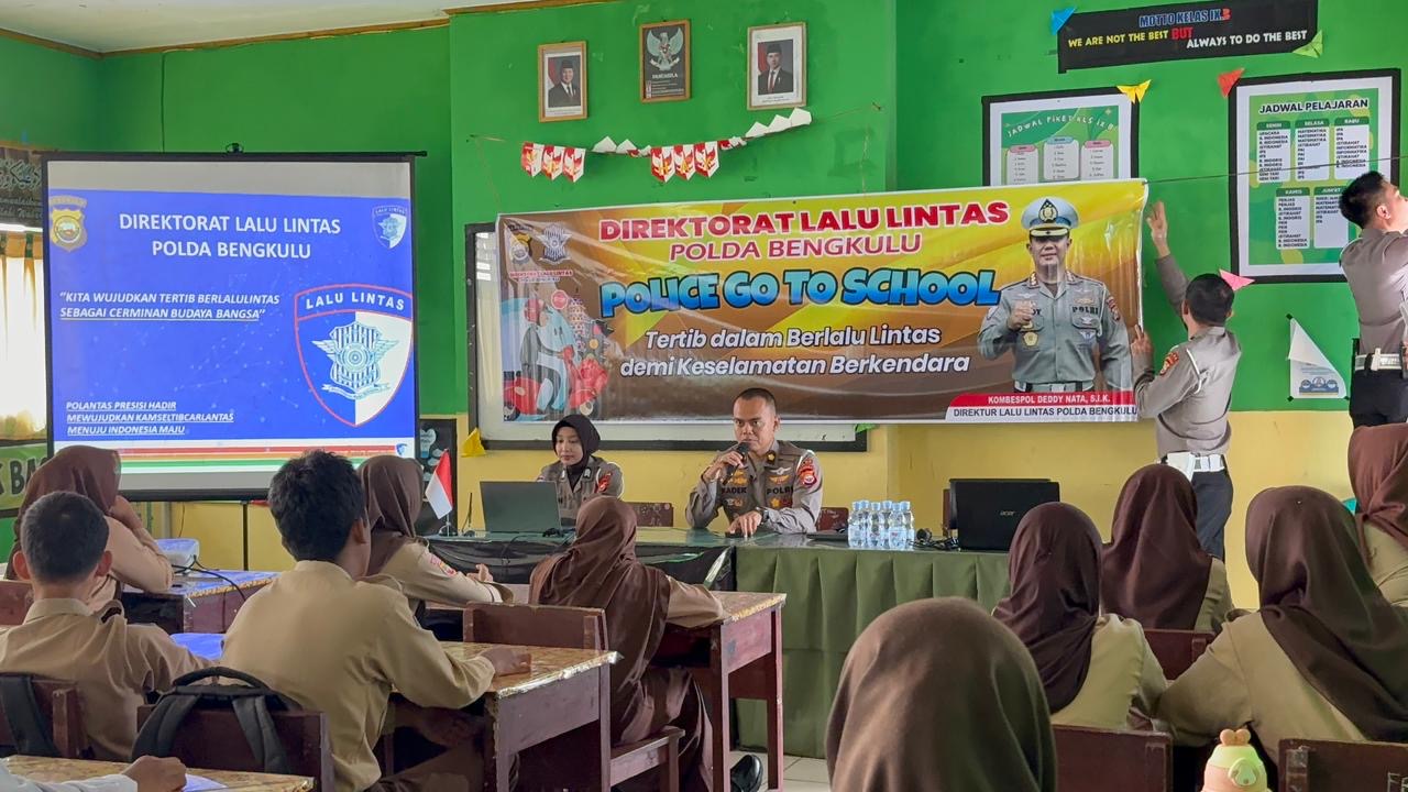 TBNews, Bengkulu – Upaya menciptakan generasi muda yang sadar dan tertib berlalu lintas terus dilakukan oleh Ditlantas Polda Bengkulu. Salah satunya diwujudkan melalui program Police Goes to School yang kali ini digelar di SMPN 9 Kota Bengkulu, Rabu (01/10/2025).