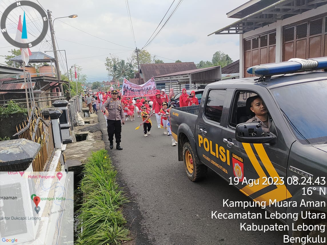TBNews, LEBONG – Personel Polsek Lebong Utara Polres Lebong, melaksanakan kegiatan pengamanan Pawai/Karnaval PAUD dan TK dalam rangka HUT RI ke-78, Sabtu (19/8/2023) pagi.