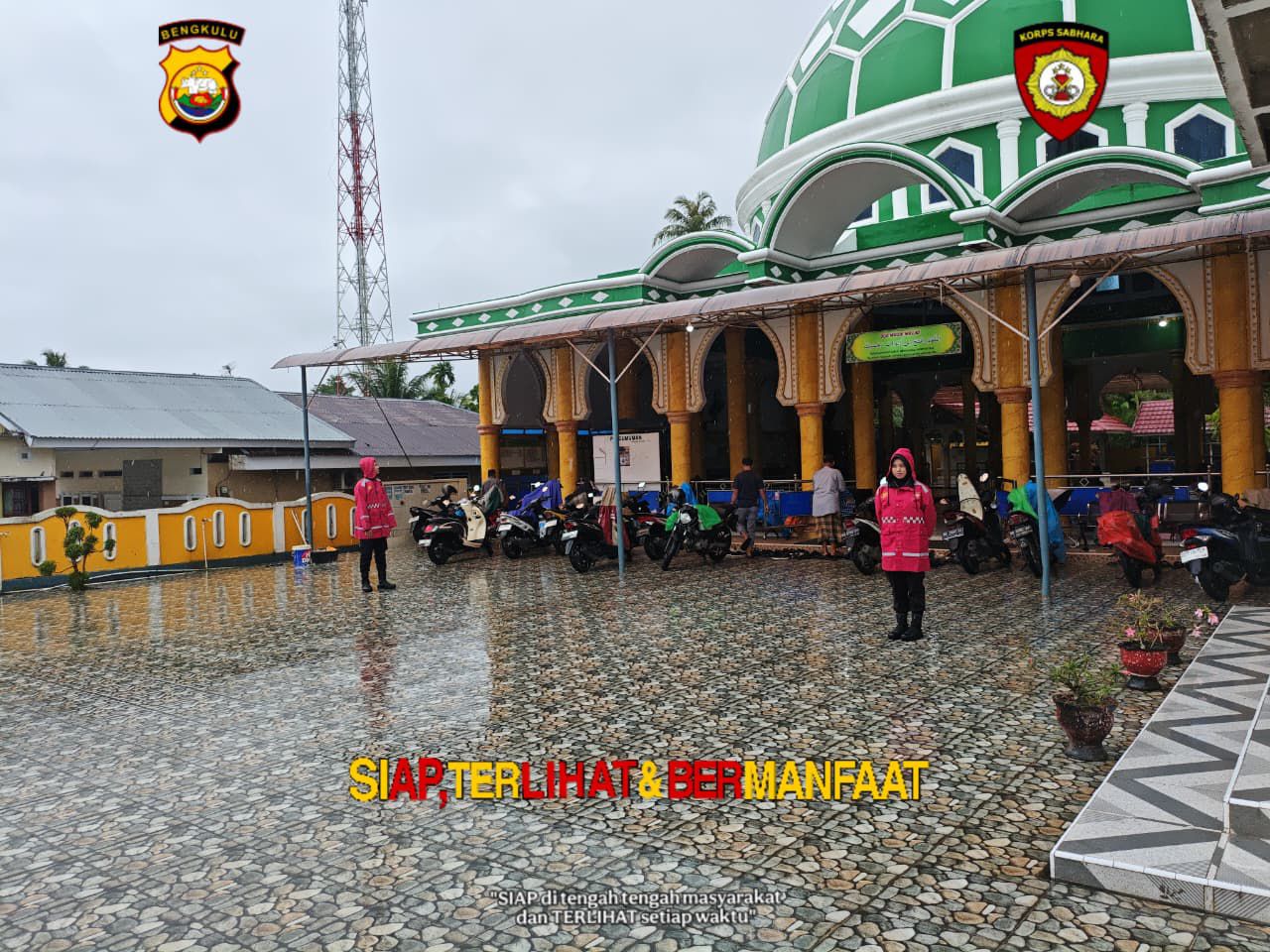 Walaupun Cuaca Hujan Anggota piket Pos Shelter Ditsamapta Polda Bengkulu dan juga Polwan Ditsamapta Polda Bengkulu melaksanakan pengamanan sholat jumat dan juga yang bertugas melakukan pemantauan di sekitar masjid untuk memastikan situasi tetap aman dan kondusif tidak terjadinya tindak pidana 3C ( Curat , Curas , dan Curanmor) Dengan kehadiran polisi di lokasi, diharapkan dapat memberikan rasa aman dan nyaman kepada masyarakat bahwa keamanan dan ketertiban umum tetap terjaga dalam pelaksanakn Ibadah Sholat Jumat.