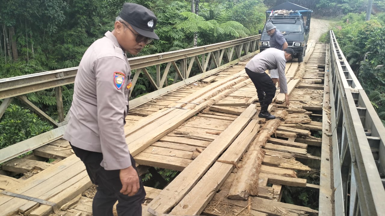 jembatan tersebut telah mengalami kerusakan cukup parah. Beberapa papan kayu penyangga sudah lapuk dan bolong dibeberapa tempat. Tak hanya itu besi pengikat antar kayu sudah tidak lagi berfungsi sebagaimana mestinya. Khawatir masyarakat yang melewatinya mengalami kecelakaan, petugas terus memberikan imbauan kepada masyarakat yang melintas untuk tetap berhati-hati terutama pada saat curah hujan tinggi.