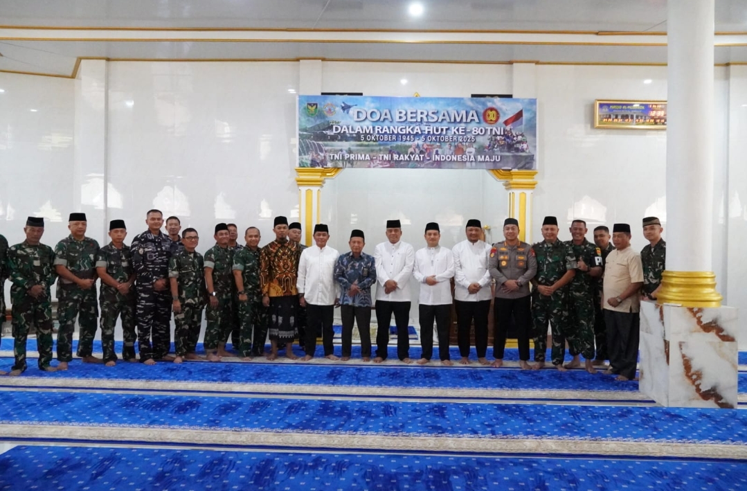 TBnews, Bengkulu – Direktur Kepolisian Perairan dan Udara (Polairud) Polda Bengkulu, Kombes Pol. Trisno Eko Santoso, S.I.K., menghadiri kegiatan doa bersama dalam rangka memperingati Hari Ulang Tahun (HUT) ke-80 Tentara Nasional Indonesia (TNI) yang dilaksanakan di Masjid Al-Mubarok, Pangkalan Angkatan Laut (Lanal) Bengkulu, Sabtu (04/10/2025).