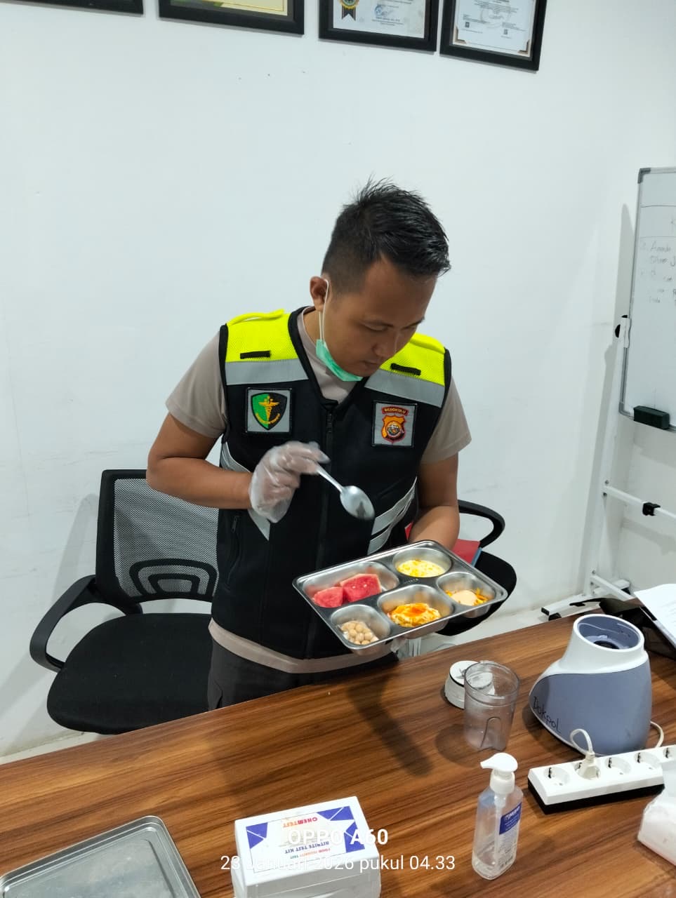Dalam pemeriksaan tersebut, tim FS MBG yang dipimpin oleh Aipda Muzani dan Briptu Ekwan dimulai dari pukul 05.00 pagi hari melakukan pengecekan terhadap jenis makanan yang disajikan, yaitu jasuke, semangka, kacang telur, telur ceplok saos, dan salad sayur.