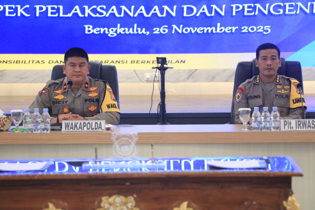 TBNews Bengkulu, 26 November 2025 – Wakil Kepala Kepolisian Daerah Bengkulu, Brigjen Pol Dicky Sondani, S.I.K., M.H pimpin Taklimat Akhir Audit Kinerja Tahap II Itwasda Polda Bengkulu Aspek Pelaksanaan dan Pengendalian pada Polda Bengkulu T.A 2025.